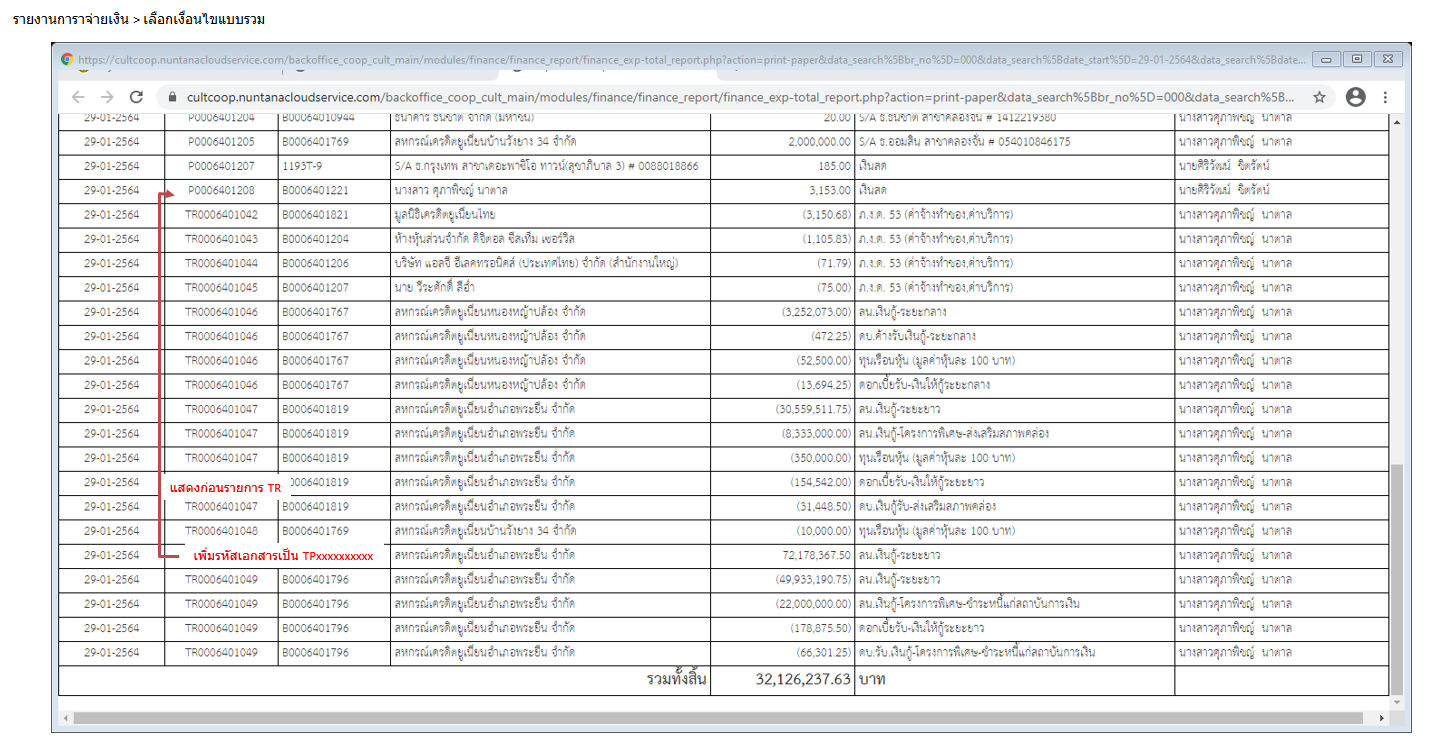 | 1 | ไม่สามารถเพิ่มรหัสเอกสารที่เป็น รายการจ่ายโอนบัญชีได้ เนื่องจากไม่มี Transection การจ่ายเงิน ดังนั้นในช่อง เลขที่ใบจ่ายเงินให้ใส่เลขที่ใบสั่งจ่ายแทน | เสร็จสิ้น | 2021-03-18 15:28:19 | nuntana |